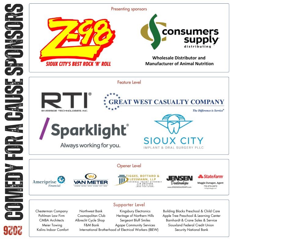 Thank you to the following sponsors of our 2026 Comedy for a Cause